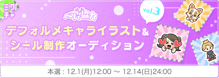 ペアで協力!デフォルメキャライラスト&シール制作オーディションvol.3 |