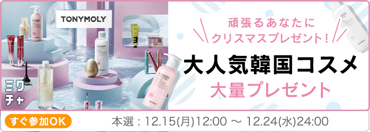頑張るあなたにクリスマスプレゼント!大人気韓国コスメ大量プレゼント |