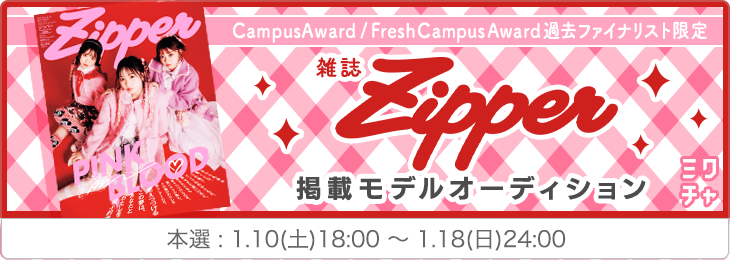 CampusAward / FreshCampusAward 過去ファイナリスト限定 雑誌『Zipper』掲載モデルオーディション |