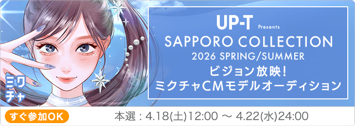UP-T Presents SAPPORO COLLECTION 2026 SPRING/SUMMER ビジョン放映!ミクチャCMモデルオーディション |