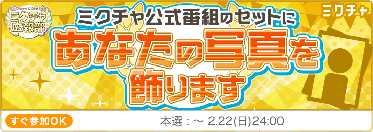 【第72回】ミクチャ公式番組のセットにあなたの写真を飾ります |