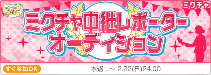 【第72回】ミクチャ中継レポーターオーディション |