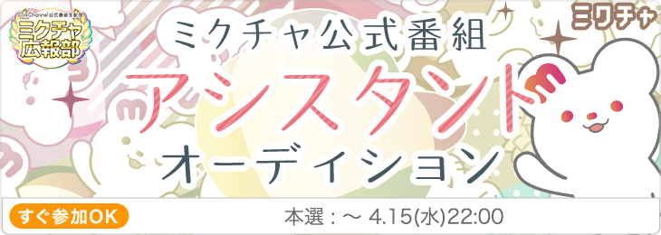 【第74回】ミクチャ公式番組アシスタント オーディション |