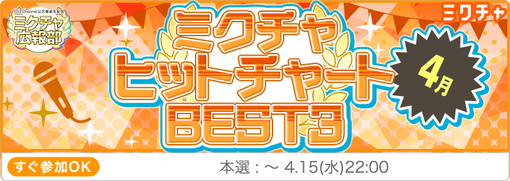 【第74回】ミクチャヒットチャート BEST3 -4月- |