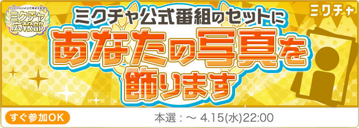【第74回】ミクチャ公式番組のセットにあなたの写真を飾ります |